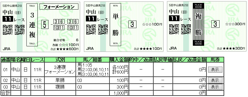 1位105:③ラヴァーズポイント、⑪アルティマブラッド⇒1着